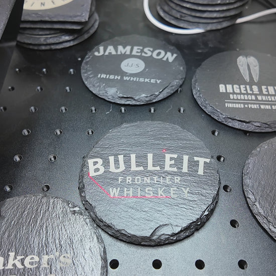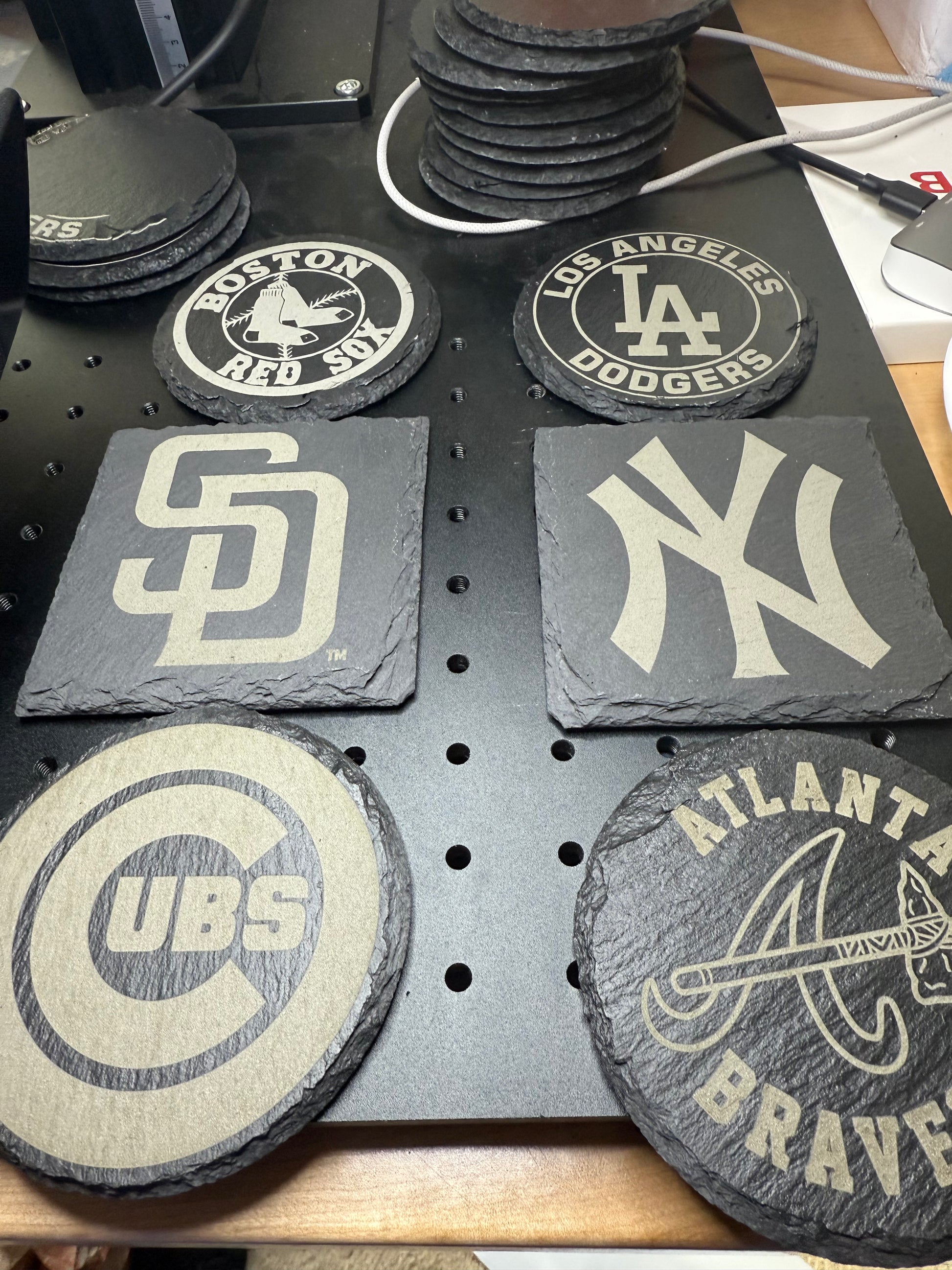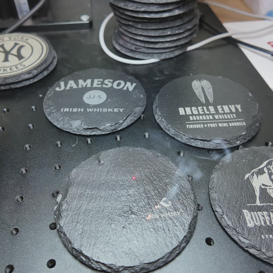 Give a gift they’ll use every day! Each natural black slate coaster is laser-engraved with the logo of your choice—sports teams, bourbons, F1, NASCAR, or any design you love.