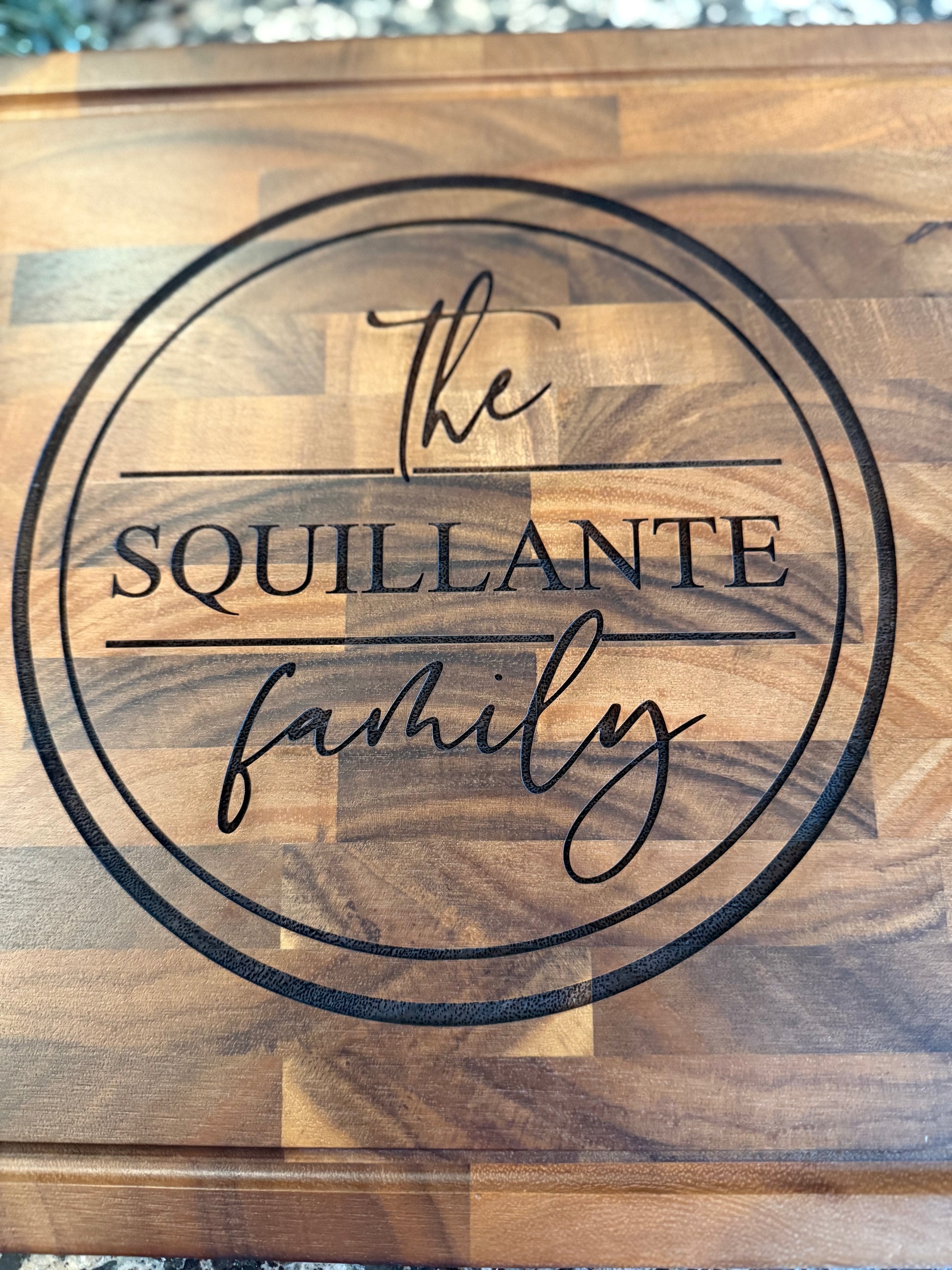 Beautiful End-Grain Walnut boards Deep Engraved with the design of your choice. Photos are just for example - we can engrave about anything you have in mind. The perfect gift for that special occasion. 17"x13"x1"